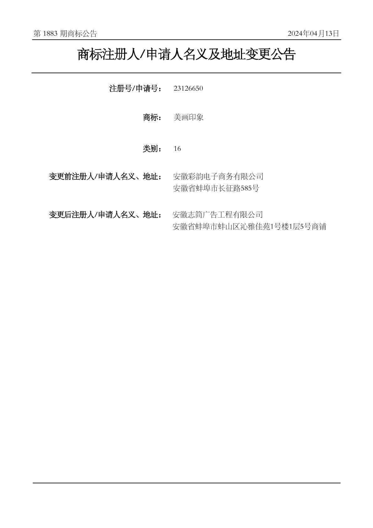 2024-04-04 变更商标申请人/注册人名义/地址 | 核准证明打印发送