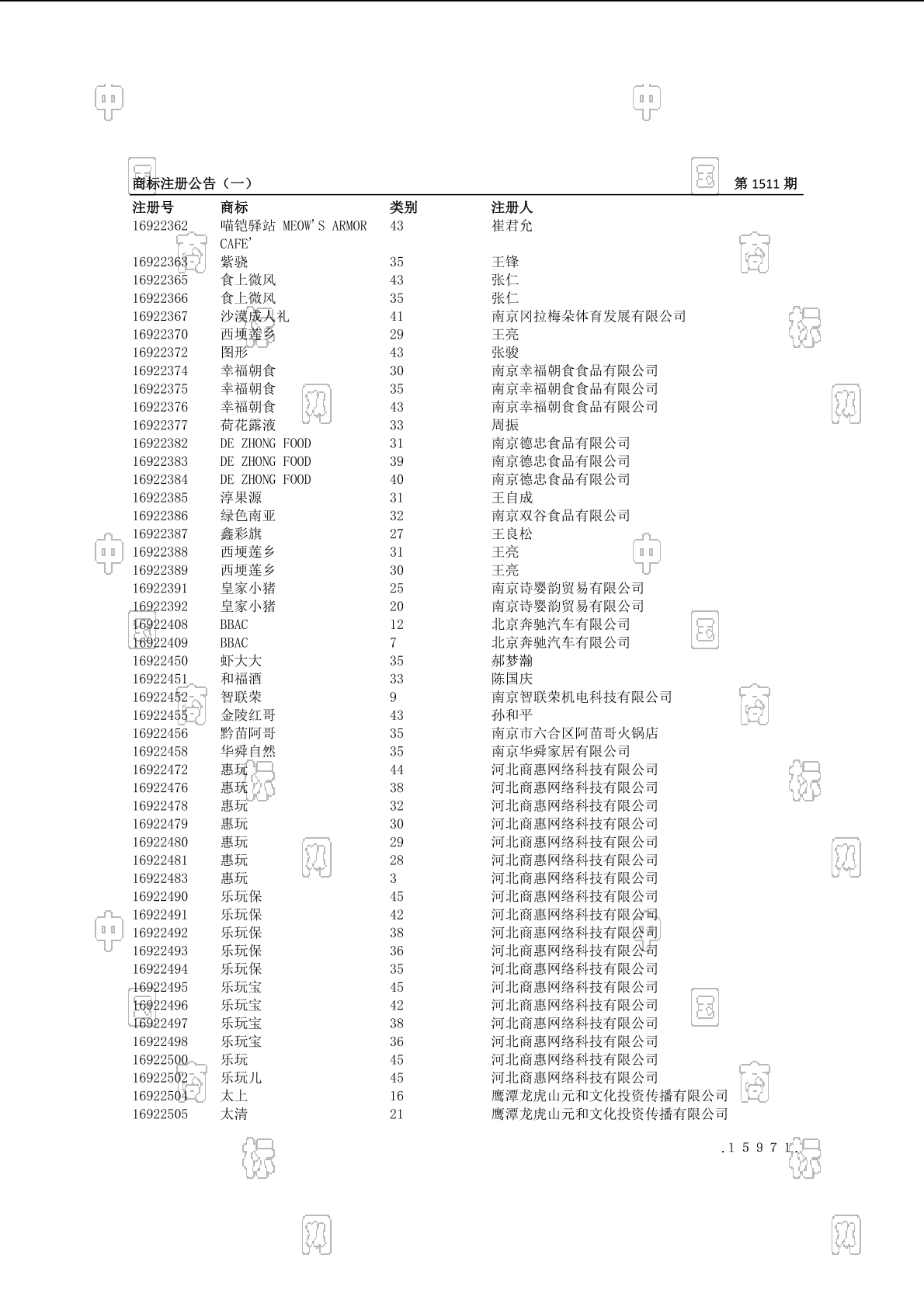 3001-咖啡;3002-茶;3006-以谷物为主的零食小吃;3006-饼干;3007-粥;3008-谷类制品;3009-挂面;3010-以谷物为主的零食小吃;3011-豆粉;3013-冰淇淋;3015-醋 - 1499